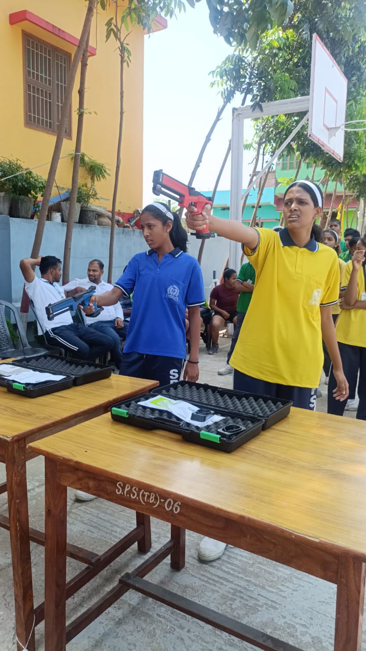 GIRLS OF SANSKAR PUBLIC SCHOOL PARTICIPATING IN SHOOTING COMPETITION